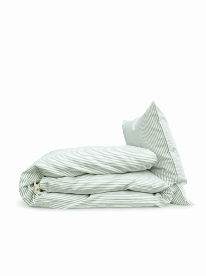 Sengetøj Mosgrøn-hvid stribe, økologisk bomuld