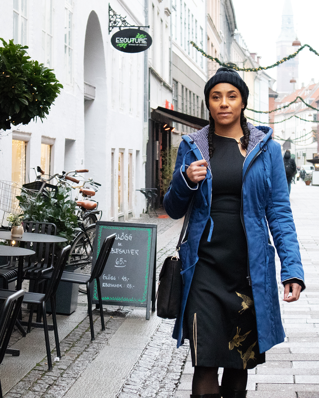 Isoleringen er Thinsulate [Oekotex]. Det betyder dog IKKE, at det er økologisk, men vi har alligevel valgt at bruge materialet på grund af dets fremragende isoleringsevne. Du kan holde varmen ned til -15°C med et tyndt lag isolering, så jakken har en smuk facon. Det er jo ikke særlig bæredygtigt at producere en vinterjakke, som ikke er varm. Så ja! Her er et kompromis, hvor vi gik så langt, vi kunne i vores øko-korstog. Ligeledes er reflekskanter konventionelt produceret.