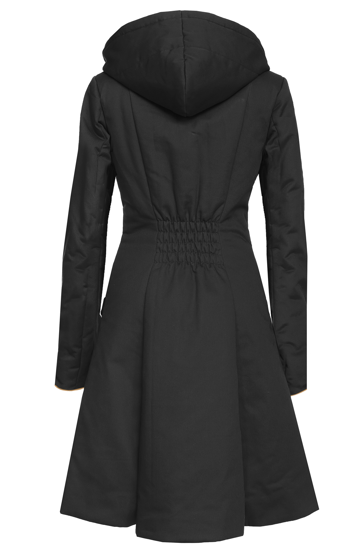 Isolde er en smuk vinterfrakke, der sidder flot og tæt til kroppen, så du undgår det klassiske telt-look. Frakken er syet af en solid, økologisk bomuld og er isoleret med en tyk Thinsulate®, der holder dig varm helt ned til -15°C. Et elastikpanel i ryggen får frakken til at sidde til i taljen. Derudover har den lynlås og bindebånd fortil. Ærmerne og de dybe lommer har ribkanter, der er pyntet med et reflekstittebånd, som går igen inde i den store hætte. Således bliver du nemmere set i vintermørket.