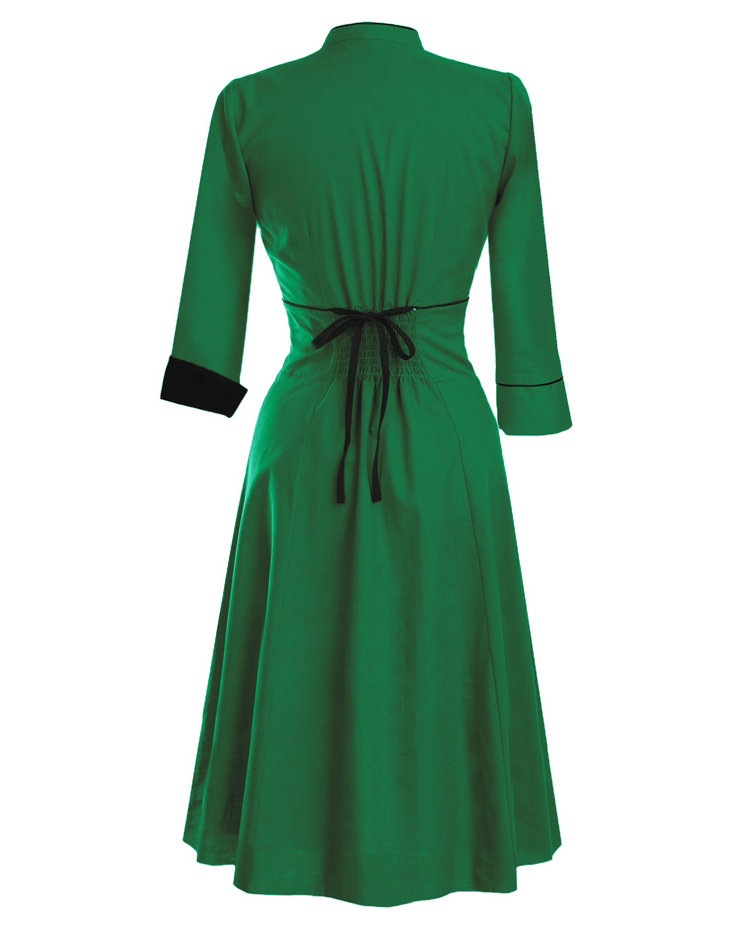 Joannakjolen er en smuk 3/4-ærmet kjole. Kjolen har mange fine detaljer, såsom tittekanter ved udskæringen, der passer med båndet i taljen, stofbetrukne knapper samt et bindebånd i ryggen. Joanna er en dejlig kjole, du nemt kan style op eller ned efter behov, så du både kan bruge den som lækker hverdagskjole eller som en fin festkjole.