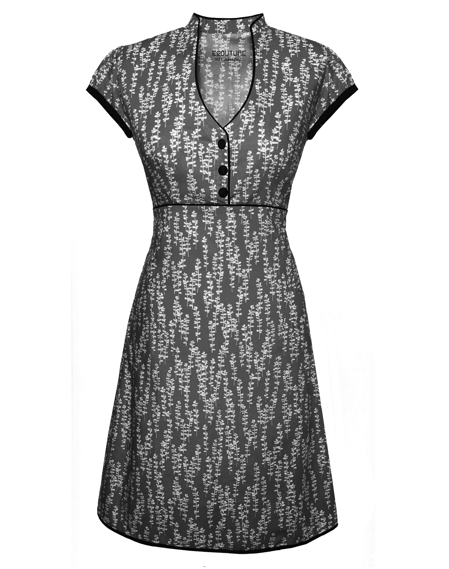 Denne kjole er lavet af en helt ny og lækker økologisk [GOTS-certificeret] bomuld fra Cloud9. Tittekanter er økologisk [GOTS-certificeret] bomuld fra Les Trouvailles d’Amandine. Lynlåsen fra Unizip er oeko-tex®-certificeret og overholder den europæiske REACH-standart.