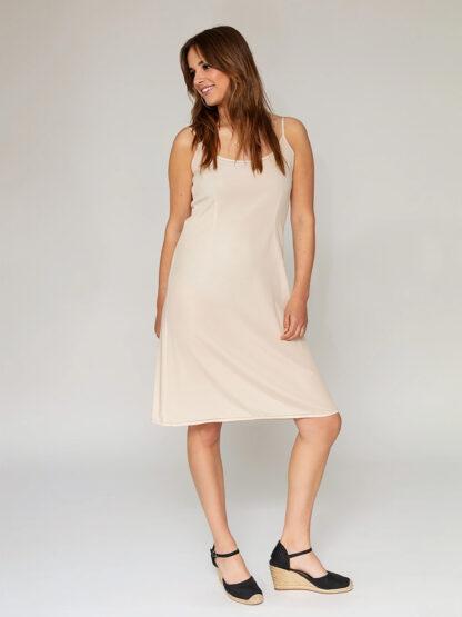 En kjole, der kan bruges året rundt – som natkjole, underkjole, eller bare til afslappede aftener derhjemme. Silken både køler om sommeren og varmer om vinteren, og den strækbare kvalitet gør den ekstra behagelig at have på.