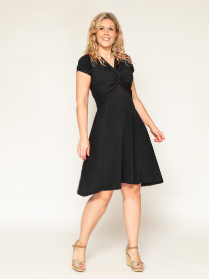 Twist er en blød jerseykjole, der ikke krøller. Den har småprikkede kanter i halsudskæringen og på ærmerne. Det er en dejlig hverdagskjole, der også kan styles op til fest og er meget velegnet til dans. En kjole, du kan tage på igen og igen.